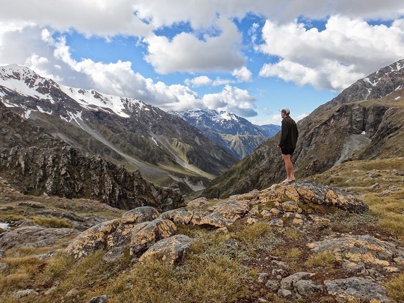 From Carrington hut follow the signposted and marked route towards Harman Pass. After about 700m the track moves out onto the riverflats of the White River. Continue up river on the true-right. At some very large boulders in the river consider looking for a safe crossing to the true-left - you may need to explore the river for some distance to find a viable crossing (