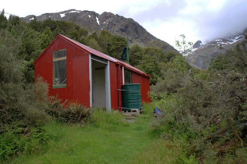 A short steep track descends off the terrace to the hut (6 bunks). The Canterbury Mountaineering Club built the hut in memory of James Park and John Morpeth who died while tramping from Lake Kaniere to the Wilberforce Valley in January 1929. Visit the