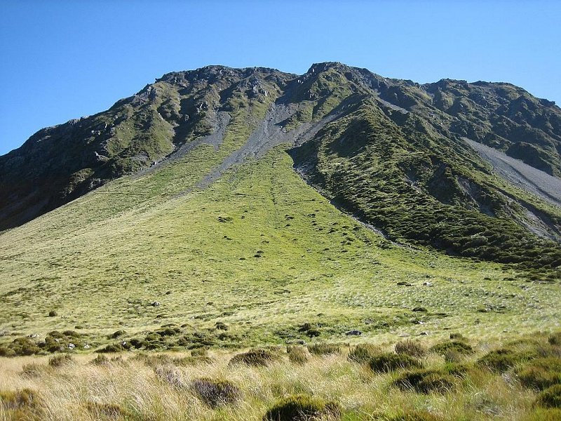 This is the steepest part of the Three Passes trip. From Park Morpeth hut walk up the true left of the Wilberforce River. A landslide may force you to cross the Wilberforce early, however the better crossing is where it joins with Hall Creek opposite Clough Memorial. Start up the zigzag track towards Browning Pass/Noti Raureka. The zigzags were part of a track started in the 1860s. John Pascoe warned in his 1938 route guide "it is inexpedient to follow the track to its illogical conclusion in the bluffs near the Hamer Falls, lest you join the shades of the miners who built the track." From the top of the marked zigzag, before it disappears into the bluffs, climb the obvious scree. In summer there is a worn trail visible. Just before you reach the summit the scree narrows, and the climb is at its steepest. You can either continue carefully up the rock and tussock to the left of the scree or climb to the centre of the scree. If there is snow in this section (winter and early spring) it is essential that all members of the party can self-arrest with ice-axes! A cornice at the top or ice conditions can dramatically increase this section’s difficulty. Once on the pass relax, the steepest section is over.