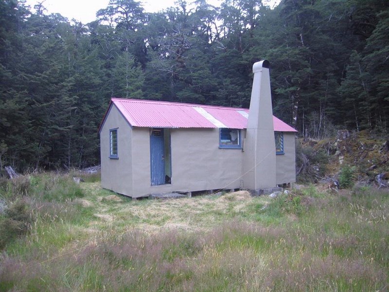 Ford this side river and continue down the riverbed on the true-left for about 15 minutes, toward where bush-clad banks draw together. Pick up the marked track on the true-left. Follow it through bush for about 30 minutes to the West Otehake Hut on a small bush-covered flat, just above the point where the East Branch of the Otehake joins the West Branch.