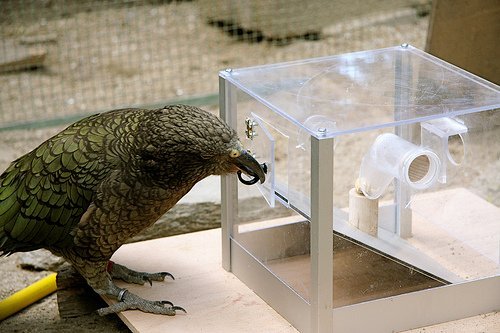 Kea have also been shown to be very adaptive in their problem solving skills, they will actively seek new ways to improve upon or speed up the solutions to any particular puzzle. Kea will also teach behaviour learnt to other Kea very rapidly.