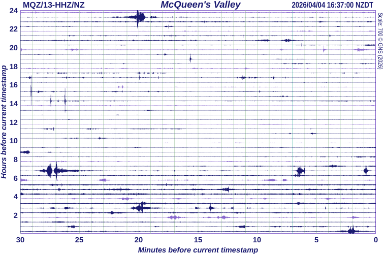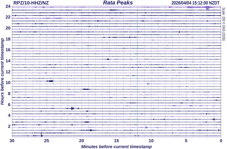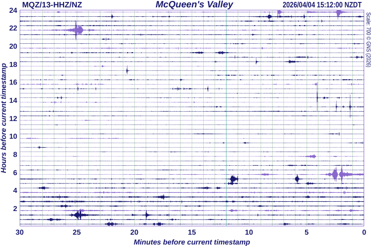 We acknowledge the New Zealand GeoNet project and its sponsors EQC, GNS Science and LINZ, for providing data/images used in this site. The "recent earthquake" database used to update information in this site is generally revised 1 min to 15 mins after an event.