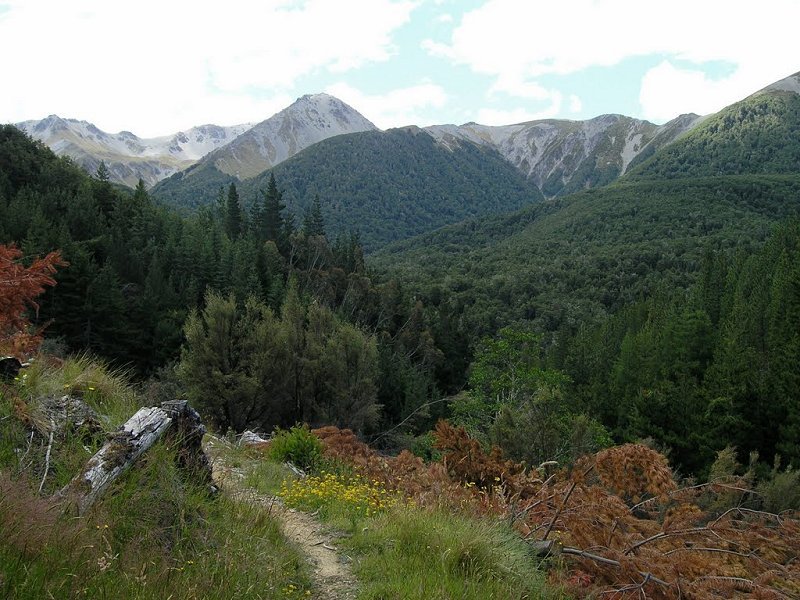 This pleasant walk through mountain beech forest begins at the Centre. You can have a close look at the different stages of beech tree life, and what grows on the trees - lichens, mosses and a small insect which secretes honey dew ( a small droplet of sweet liquid that birds feed on). Between late December to february the red flowers of the native mistletoe can produce patches of blazing colour in the tree canopy.
