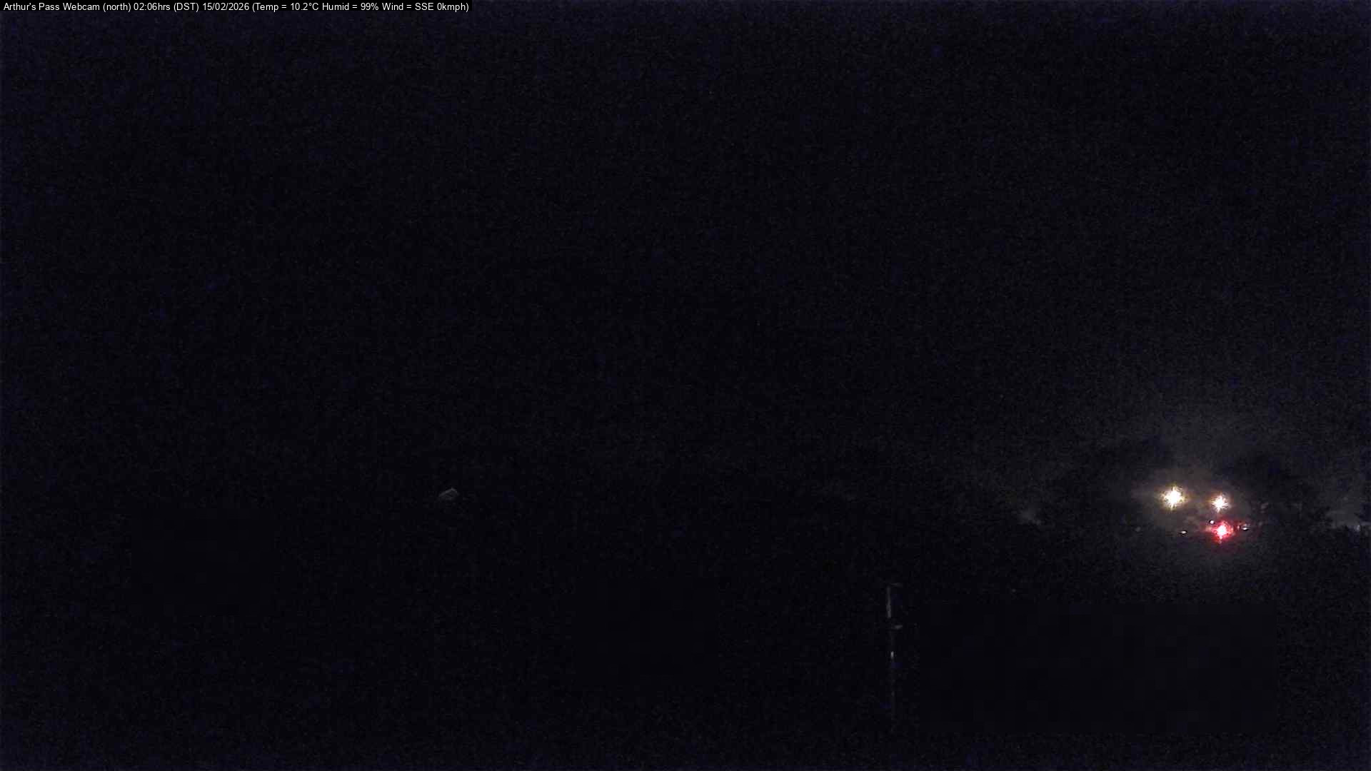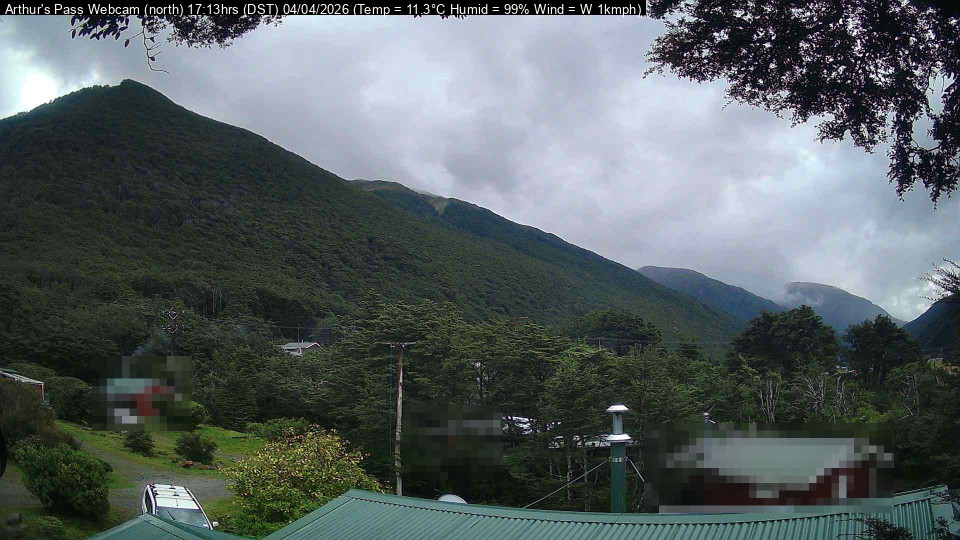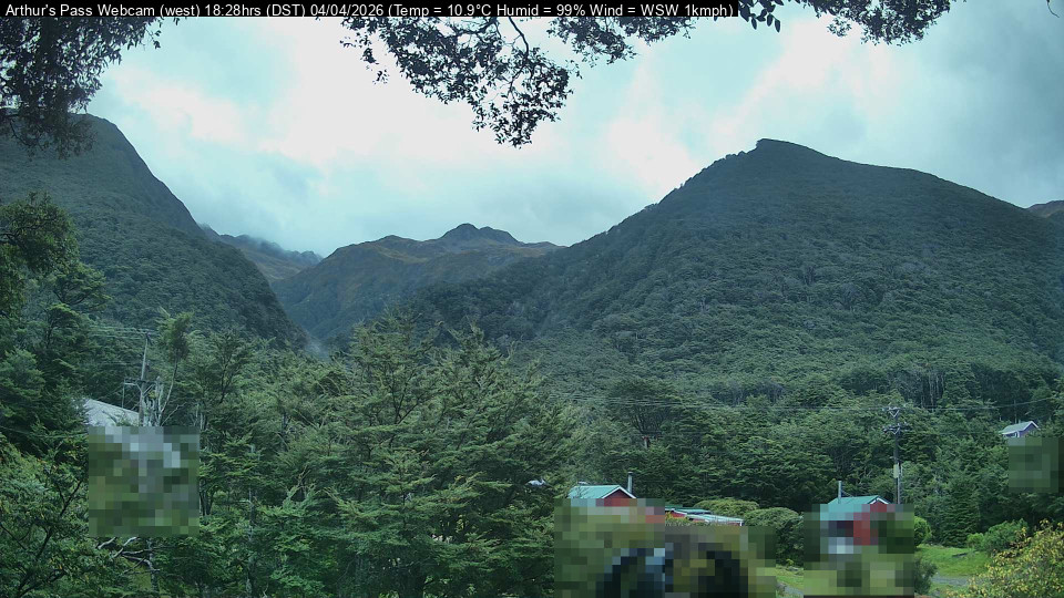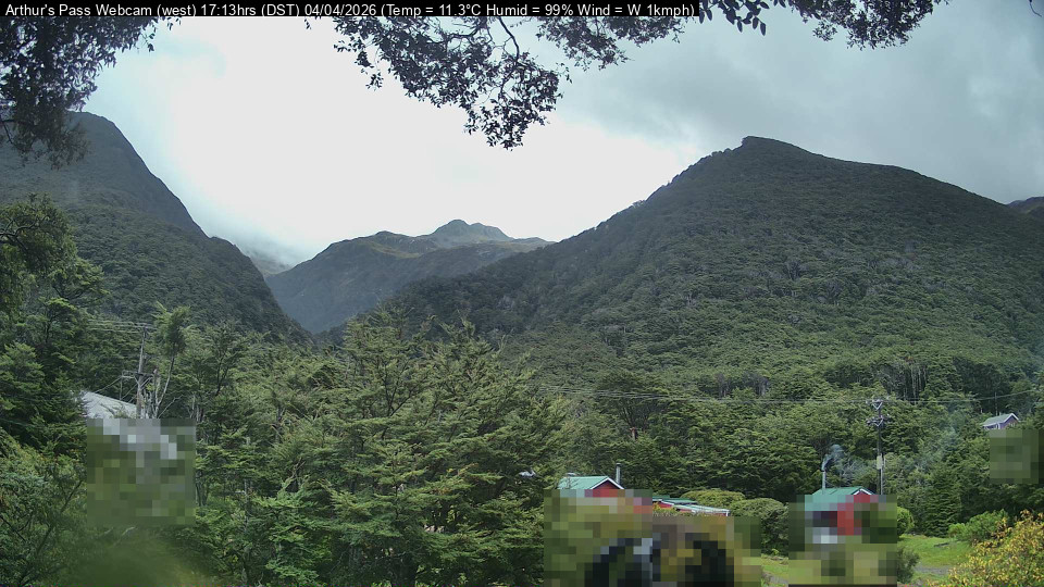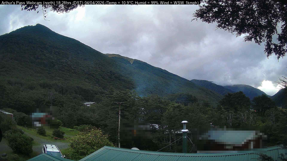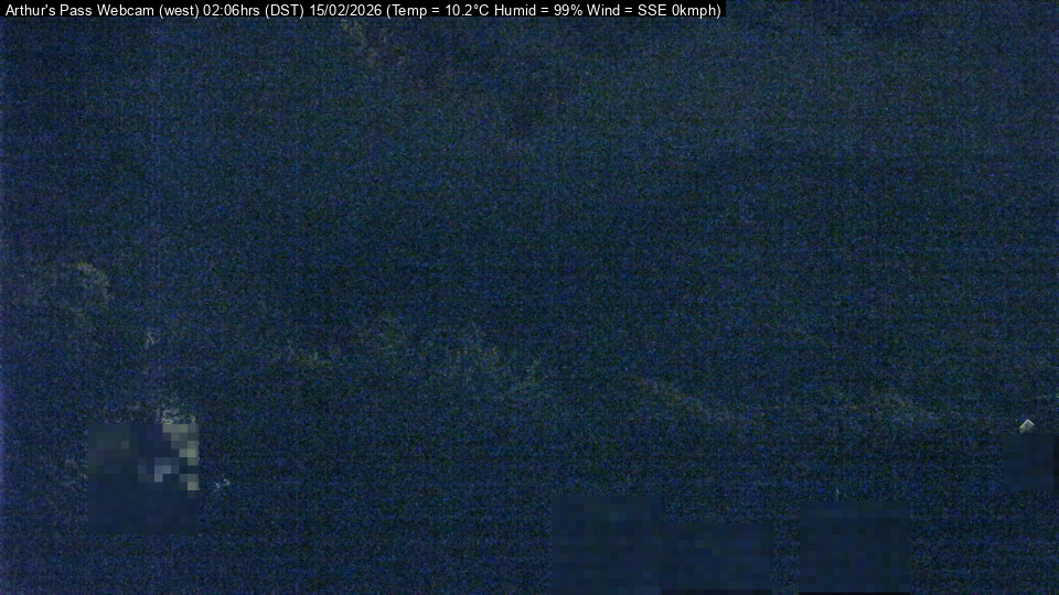 Currently there are three active webcams in Arthur's Pass village looking north and west from the same location (Rough Creek), and a Transit NZ webcam looking south through the Village. A further two webcams are situated at the Arthur's Pass Radio Repeater site (1150m) pointing east towards Temple Basin ski-field, and south towards Arthur's Pass Village.