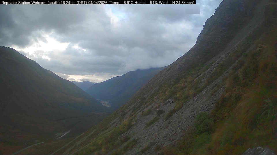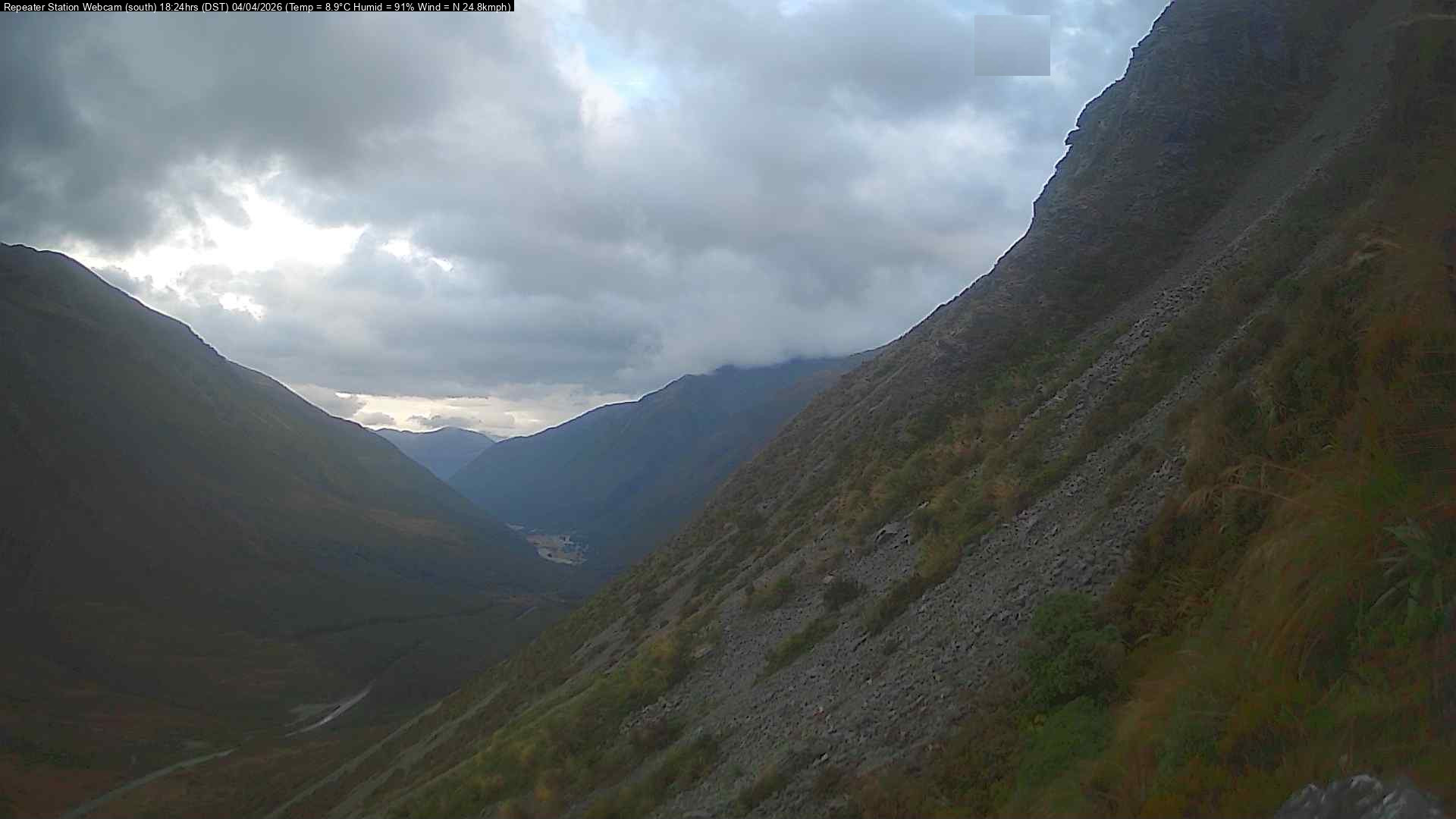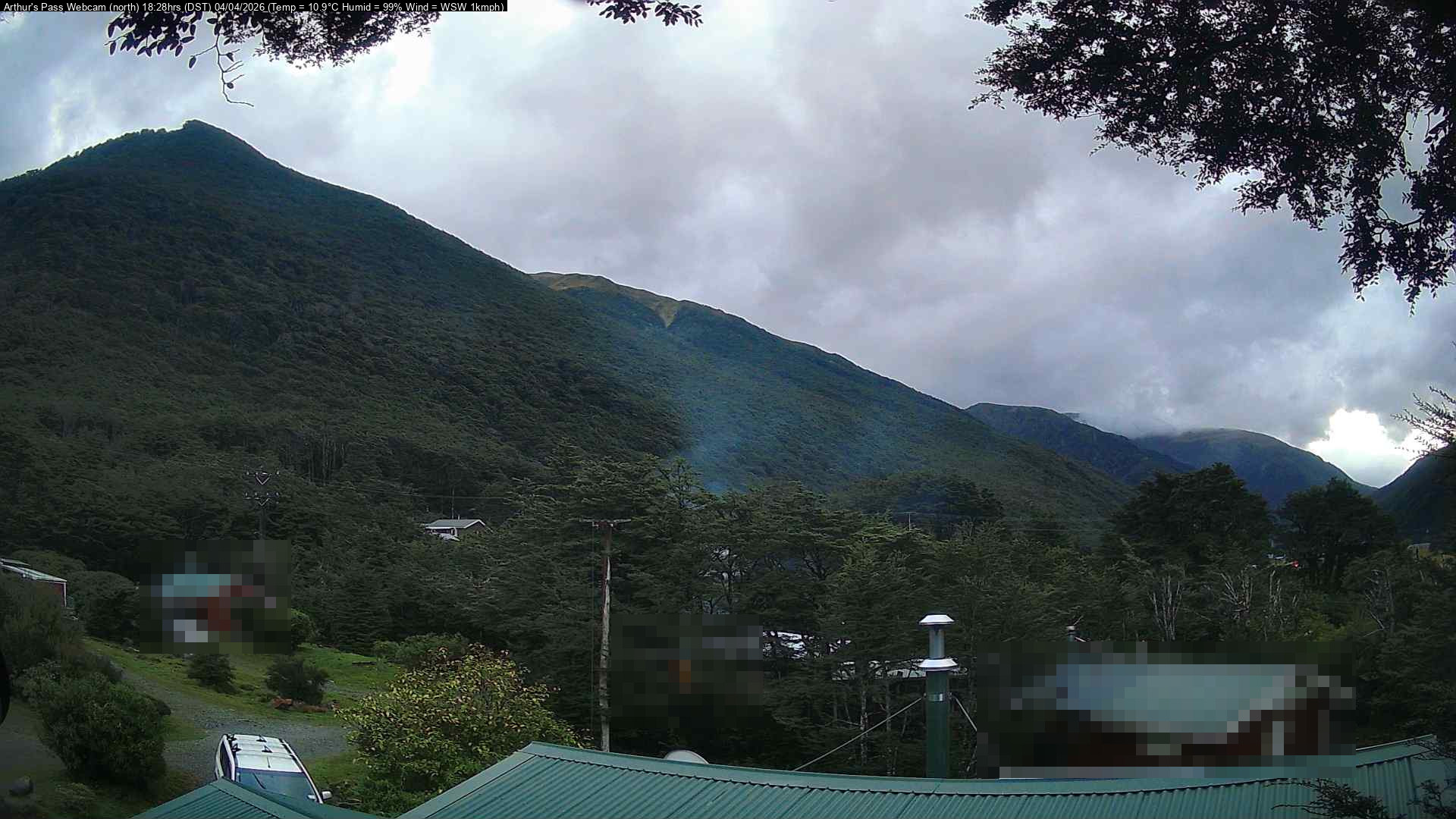 south from the Arthur's Pass Repeater Site towards Arthur's Pass Village with Mt Cassidy (left). The image is updated every 15 minutes.