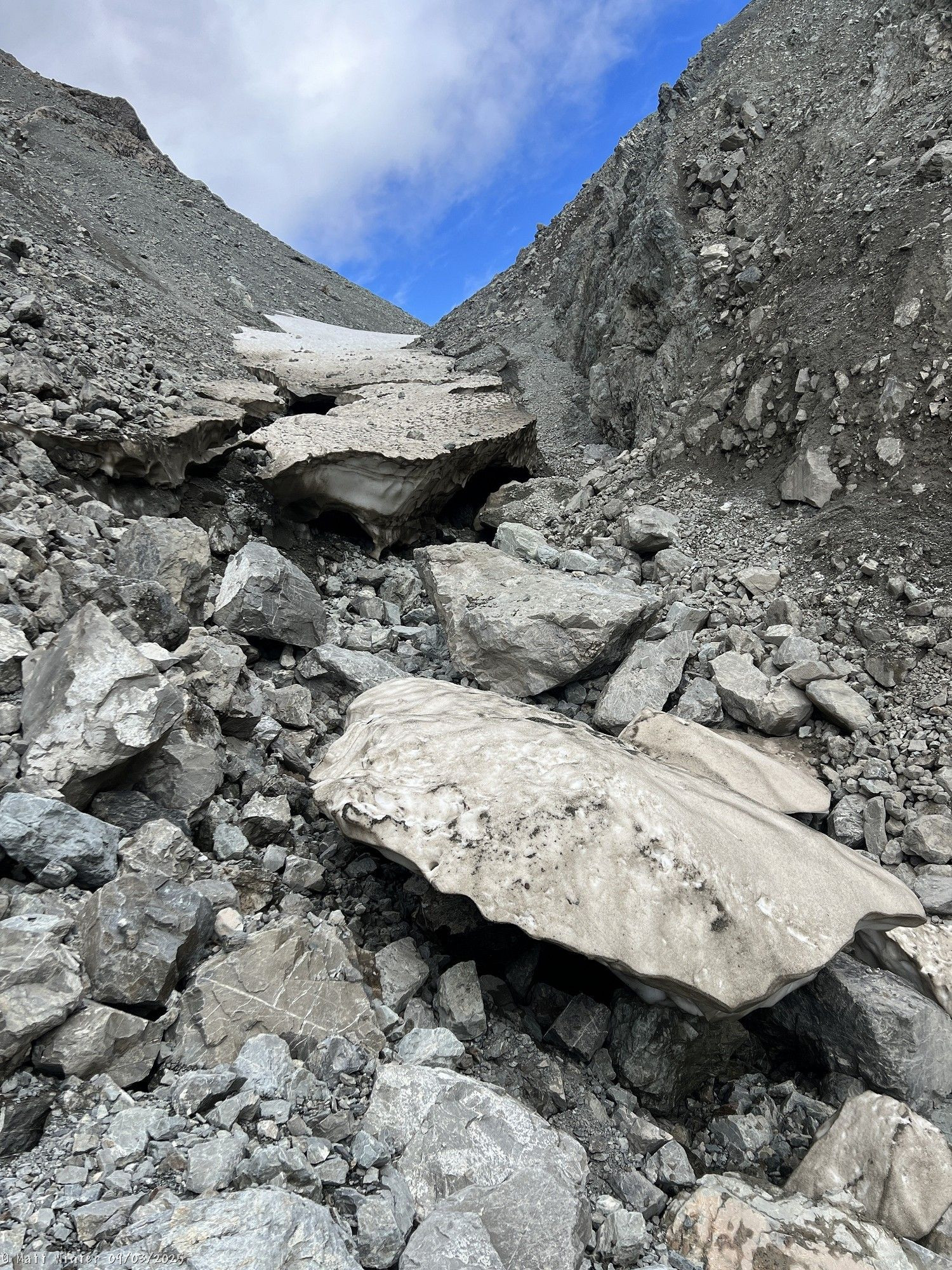 | We went over Whitehorn Pass on 9 March and the middle section of the ice sheet had collapsed. The first section is very thin on the flat part of the ice so you need to kick steps into the thicker ice slope and micro-spikes are a must. The second section has collapsed and is dangerous. We had to tramp over the loose rock around the sides. It was very loose with large boulders and reasonably risky. Approaching the third section, to get onto the ice you need to go up one of the sides. Heading up the left (true-right of valley) rock and boulders were so loose we had to quickly turn back as it was far too dangerous. On the other side was steep scree that we were able to scramble up in our micro-spikes and get onto the ice. (Report provided by Matt Winter with thanks!) |