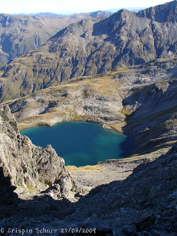 - Lake Mavis viewed from the col in Mt Oates west ridge