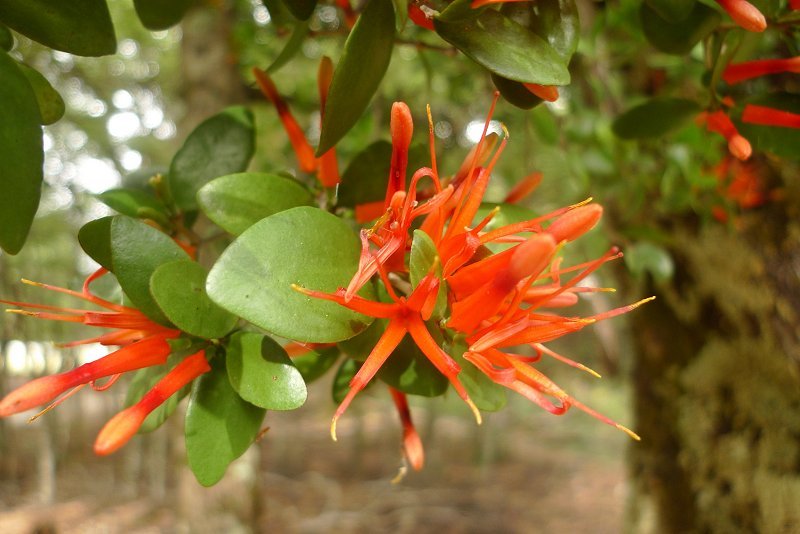 This pleasant walk through mountain beech forest begins at the Centre. You can have a close look at the different stages of beech tree life, and what grows on the trees - lichens, mosses and a small insect which secretes honey dew ( a small droplet of sweet liquid that birds feed on). Between late December to february the red flowers of the native mistletoe can produce patches of blazing colour in the tree canopy.
