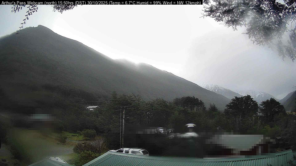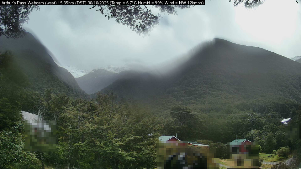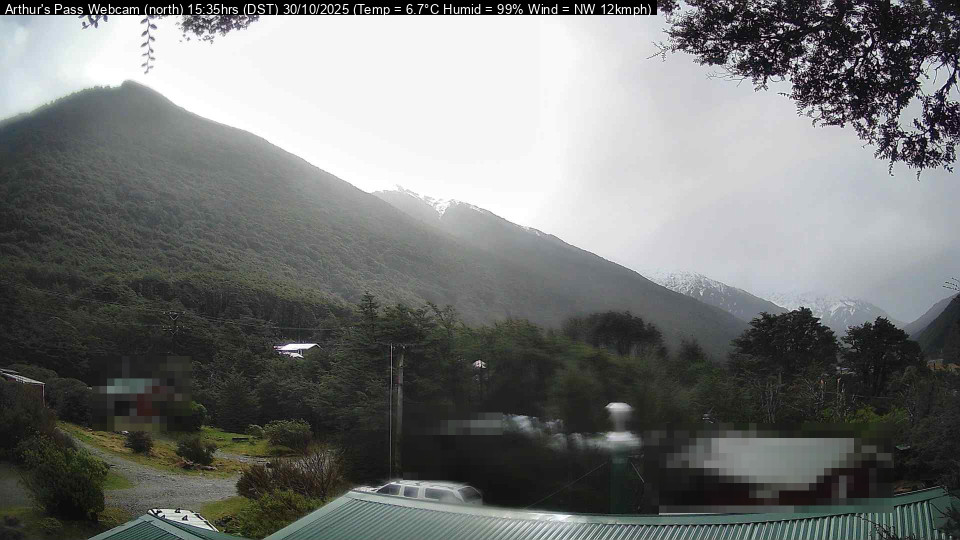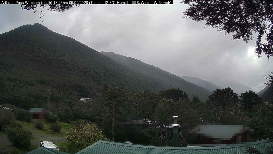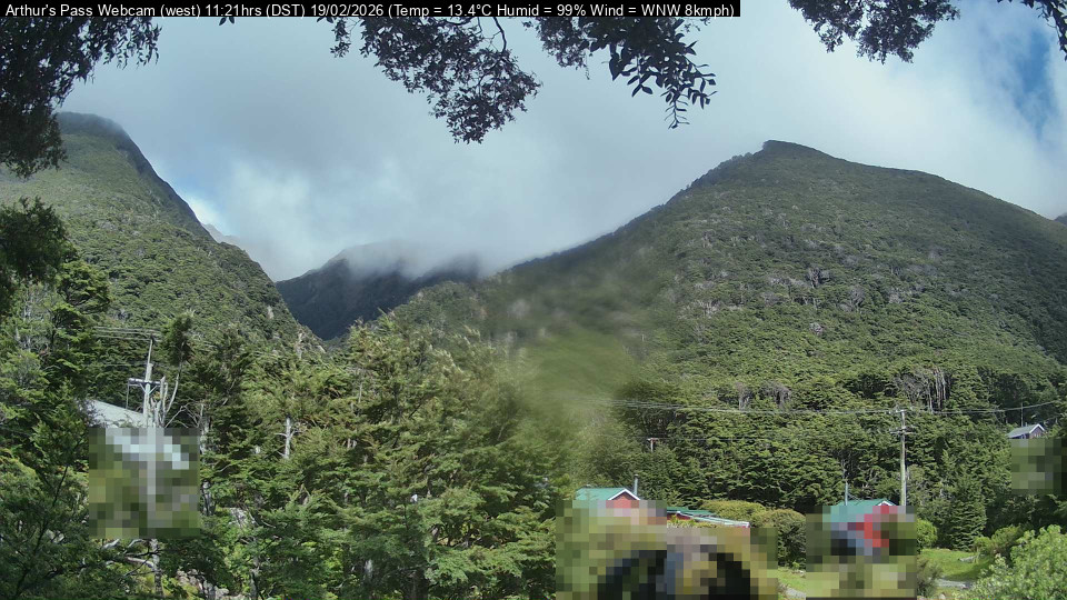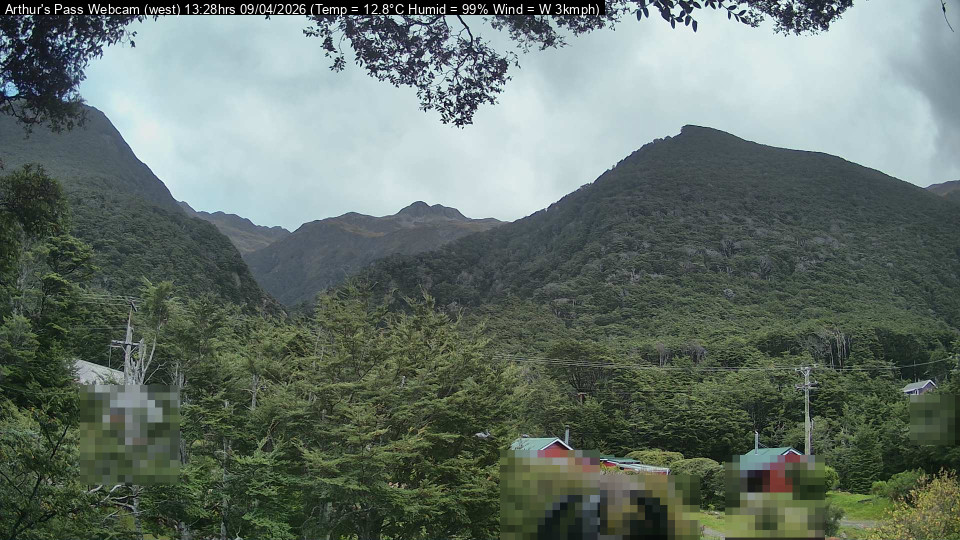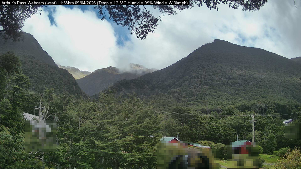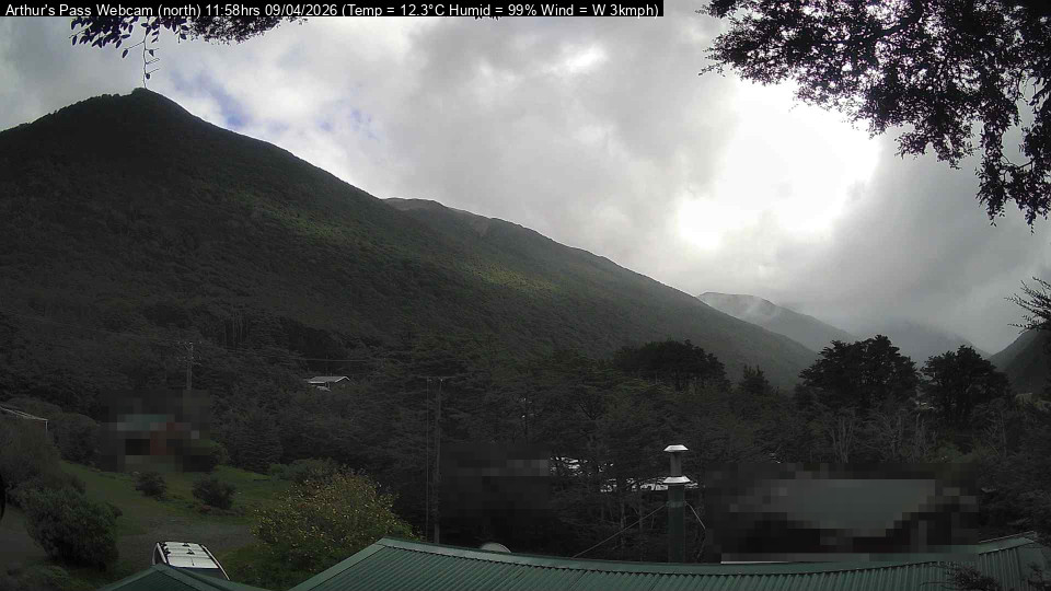 Currently there are three active webcams in Arthur's Pass village looking north and west from the same location (Rough Creek), and a Transit NZ webcam looking south through the Village. A further two webcams are situated at the Arthur's Pass Radio Repeater site (1150m) pointing east towards Temple Basin ski-field, and south towards Arthur's Pass Village.