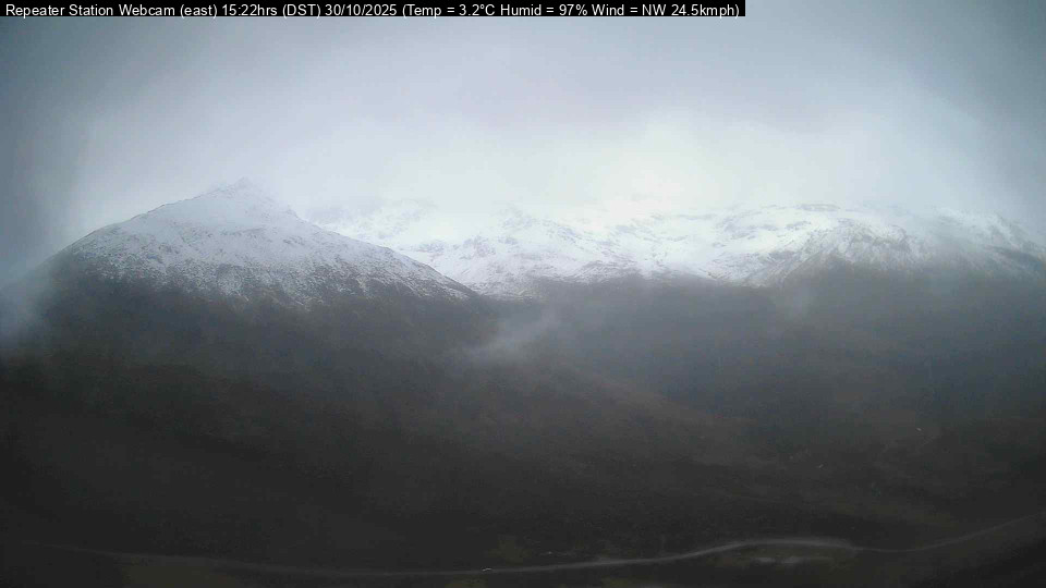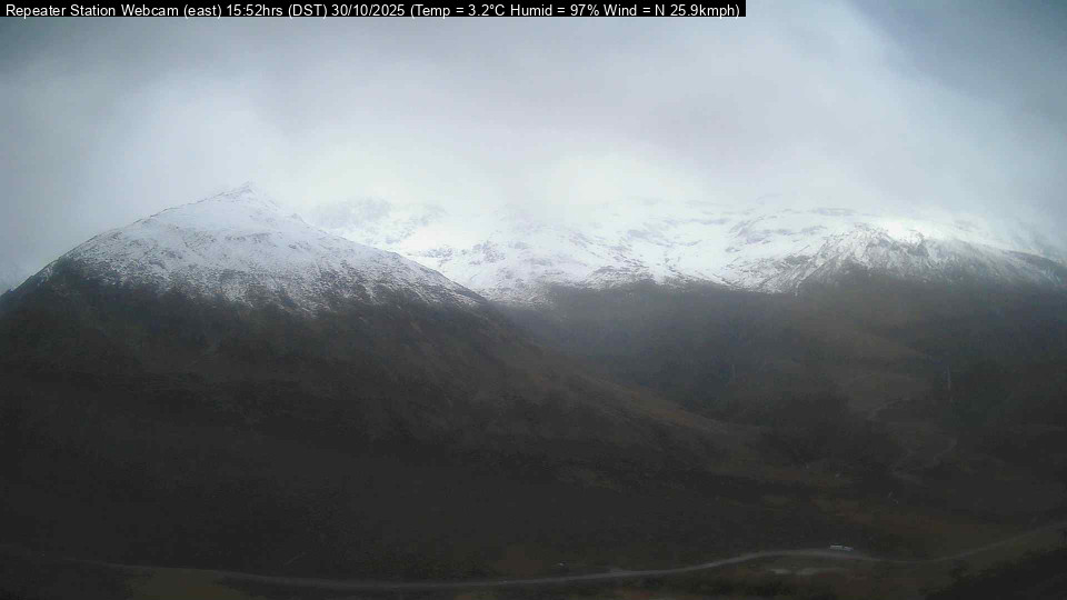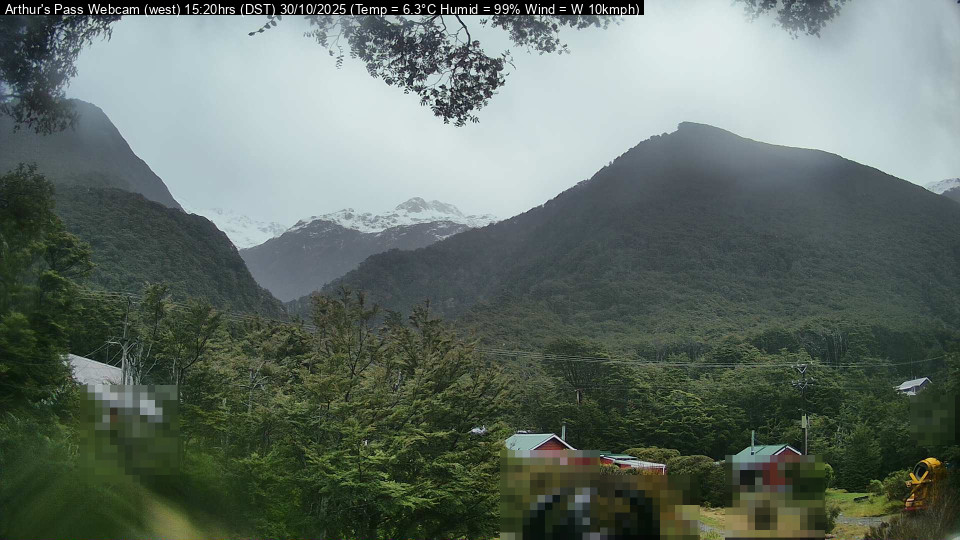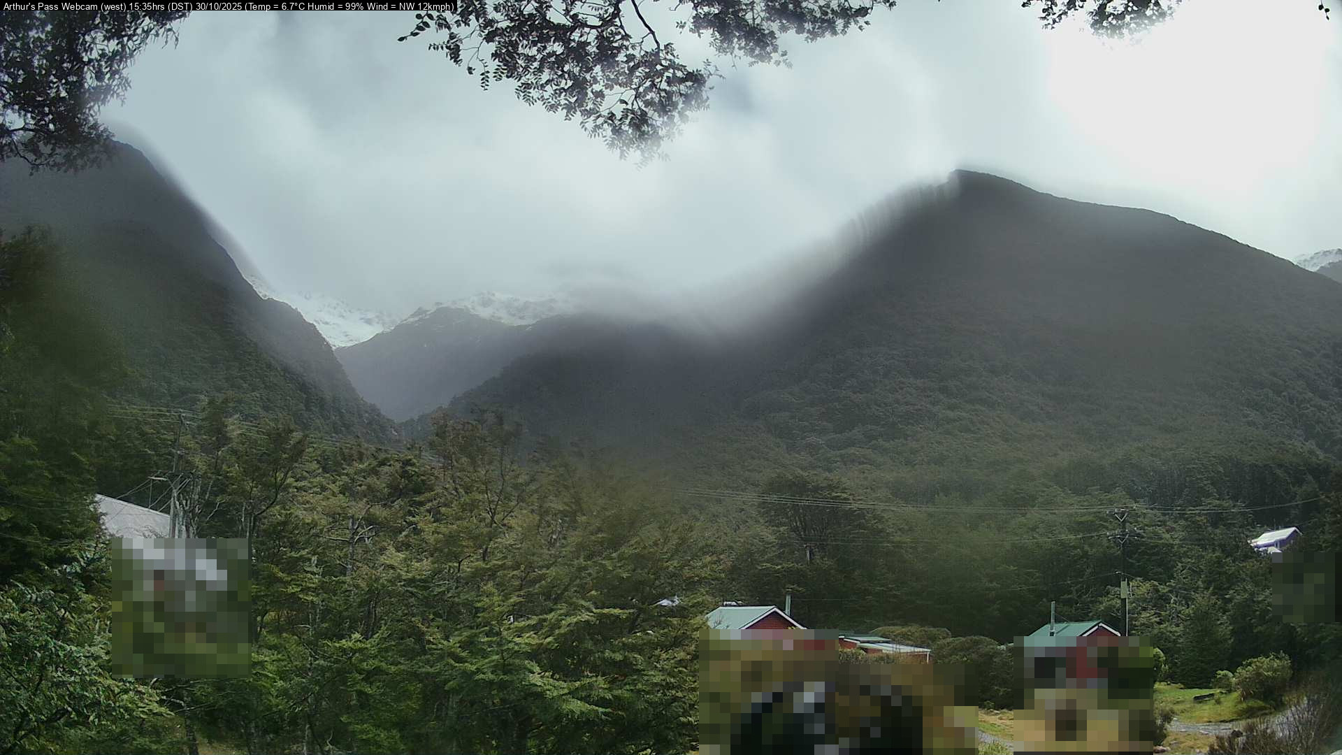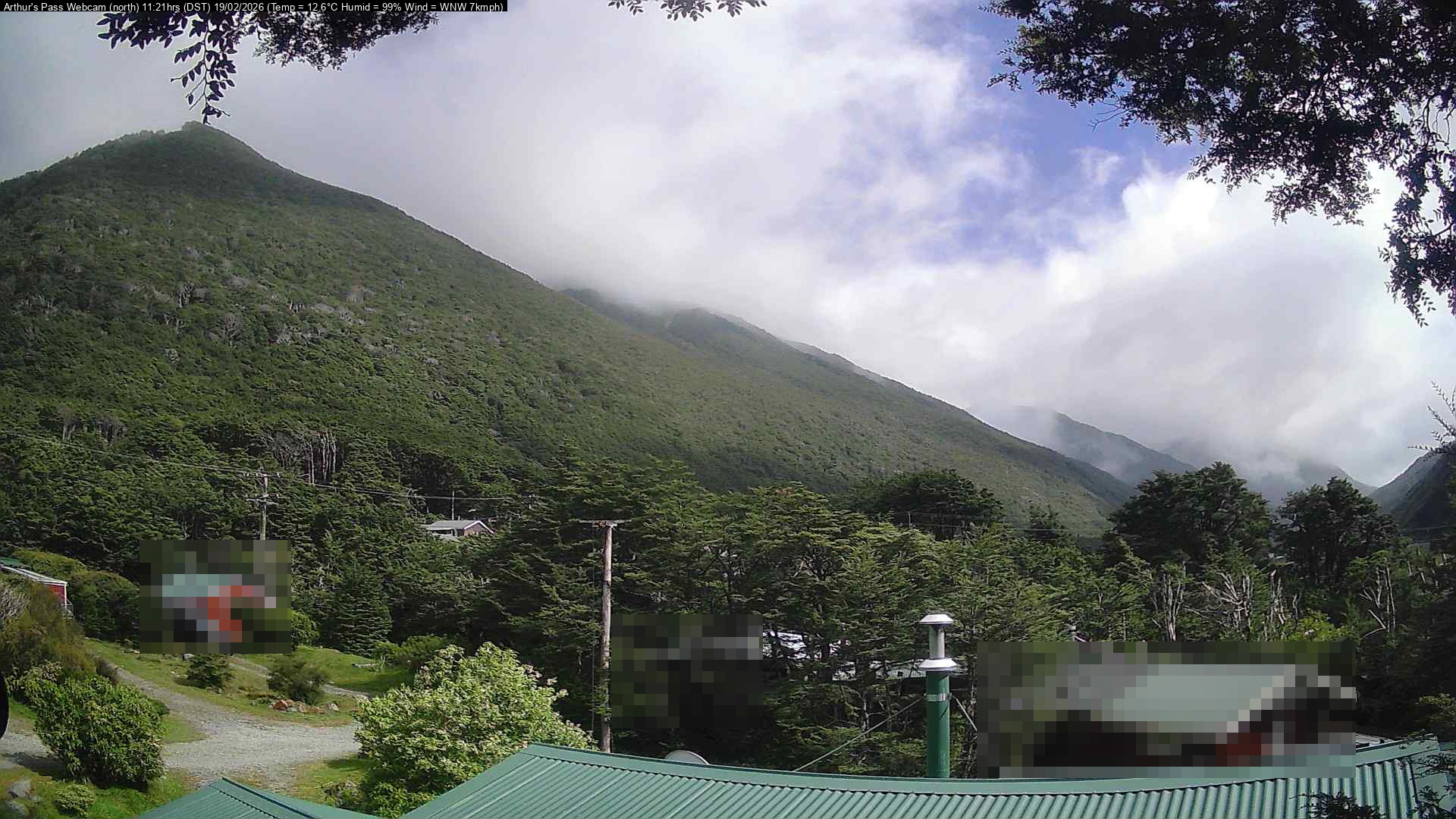 Currently there are three active webcams in Arthur's Pass village looking north and west from the same location (Rough Creek), and a Transit NZ webcam looking south through the Village. A further two webcams are situated at the Arthur's Pass Radio Repeater site (1150m) pointing east towards Temple Basin ski-field, and south towards Arthur's Pass Village.