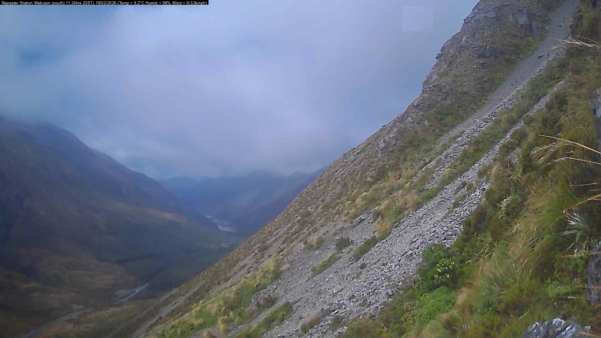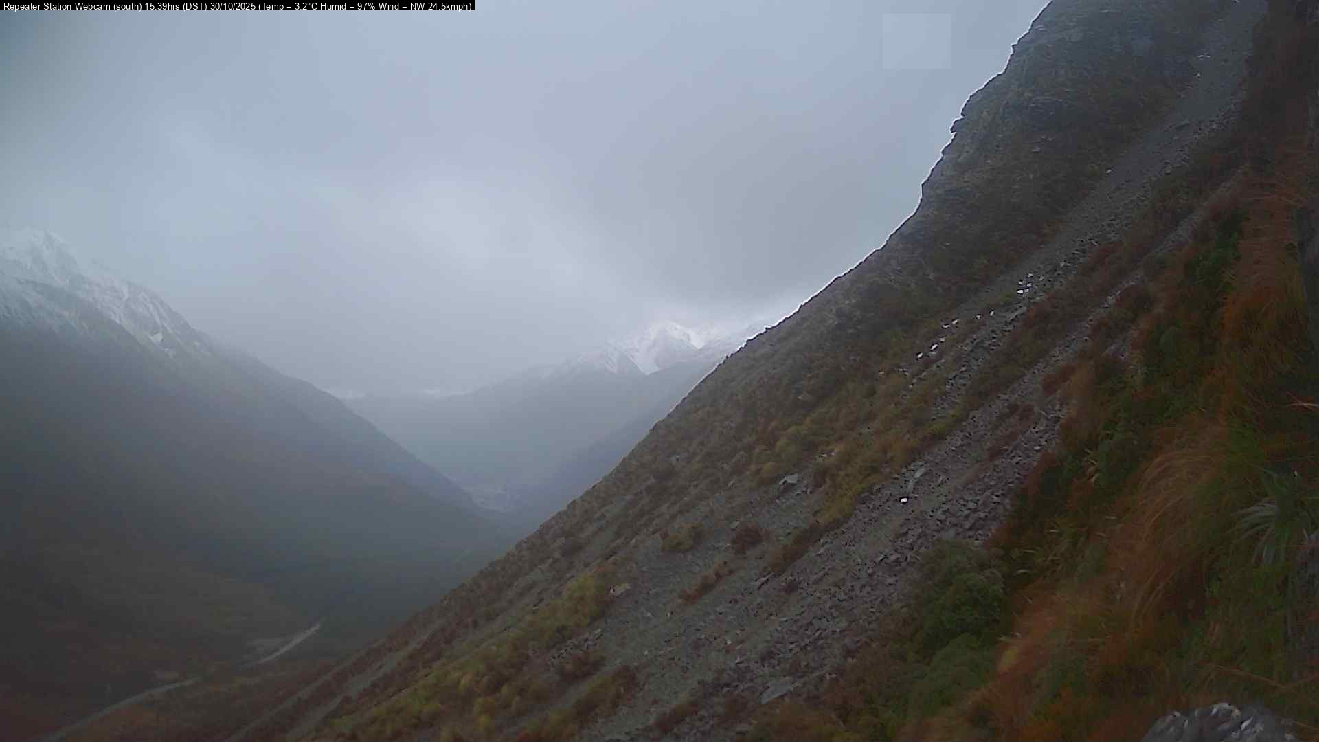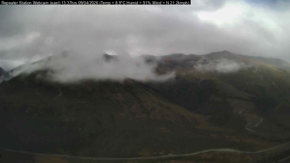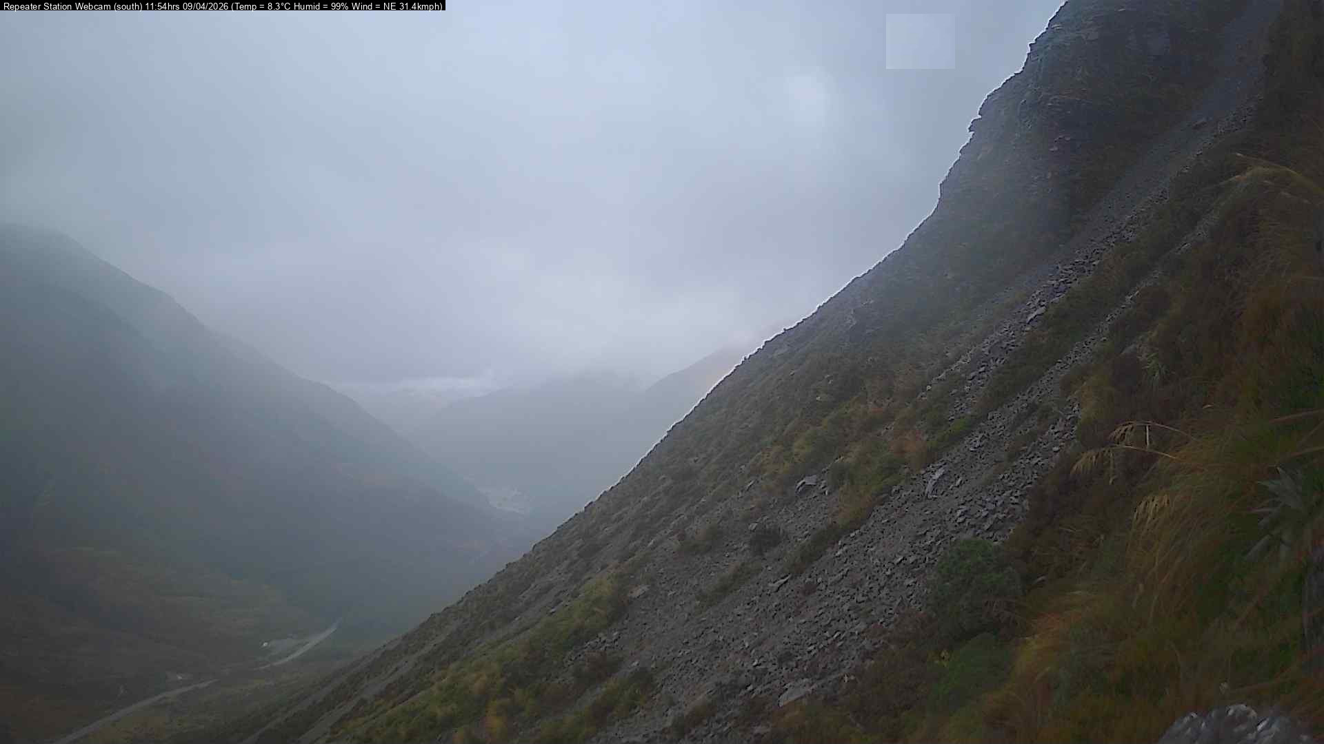 south from the Arthur's Pass Repeater Site towards Arthur's Pass Village with Mt Cassidy (left). The image is updated every 15 minutes.