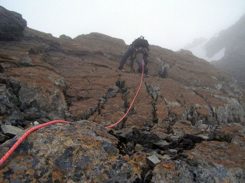 Ascending Mt Franklin (2145m) south ridge slabs