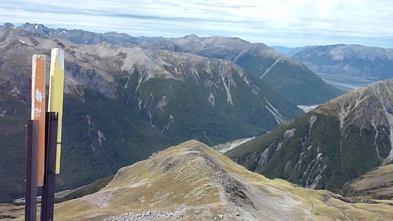 TURN BACK! The best views commence about 20 - 30 minutes outside tree-line at an old metal survey station beside the track. It then climbs steeply following a route marked with orange tipped poles along a rocky ridge. Avalanche Peak is reached after 3 - 4 hours from the valley floor.