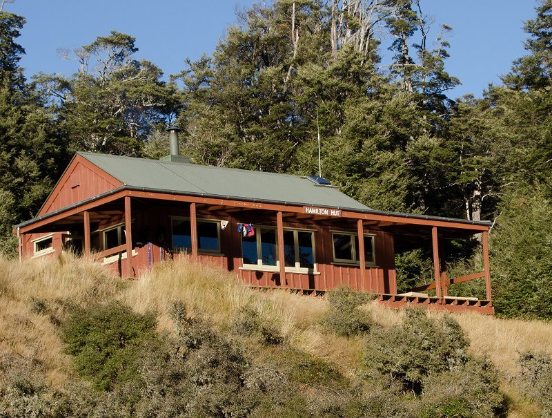 The track drops steeply from the saddle, and then more gently through the bush terraces, joining Hamilton Creek 15 minutes from Hamilton Hut. The 20 bunk hut has a wood burning stove and a radio linked to Arthur's Pass Visitor Centre. Calls can be made during office hours to obtain weather forecasts.