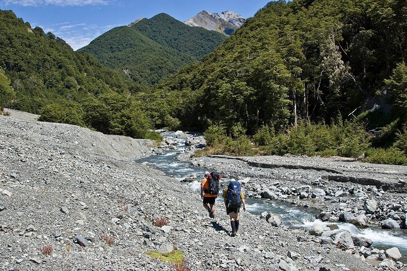 Follow the riverbed upstream, keeping to the true right bank as much as possible. You will need to cross the river several times. The track climbs into the forest at a marked point just below the junction with Long Valley Stream; it is easy to miss if you are on the wrong side of Cass River so stay on the true right. The river is crossed again via a bridge, then the track climbs for another 20–30 minutes before crossing the river again.
