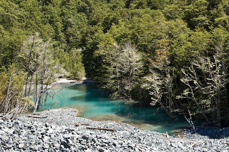 From the signposted car park at the east end of the Cass River road bridge, follow the vehicle track next to the row of pine trees until it meets Cass River.
