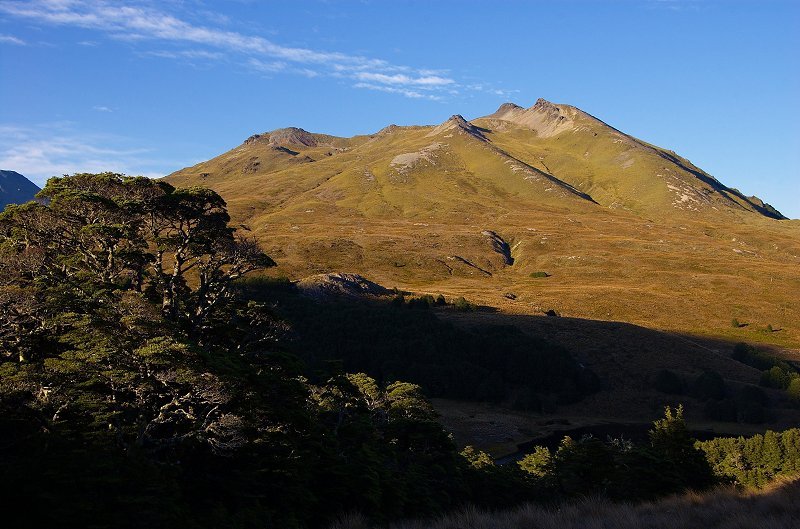 From Lagoon Saddle Hut the track gradually climbs through patches of beech forest above the tarns on Lagoon Saddle. It is marked by poles and markers.